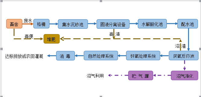 選用處理工藝時,應根據養(yǎng)殖場的養(yǎng)殖種類、養(yǎng)殖規(guī)模、糞污收集方式、當地的自然地理環(huán)境條件以及排水去向等因素確定工藝路線及處理目標。